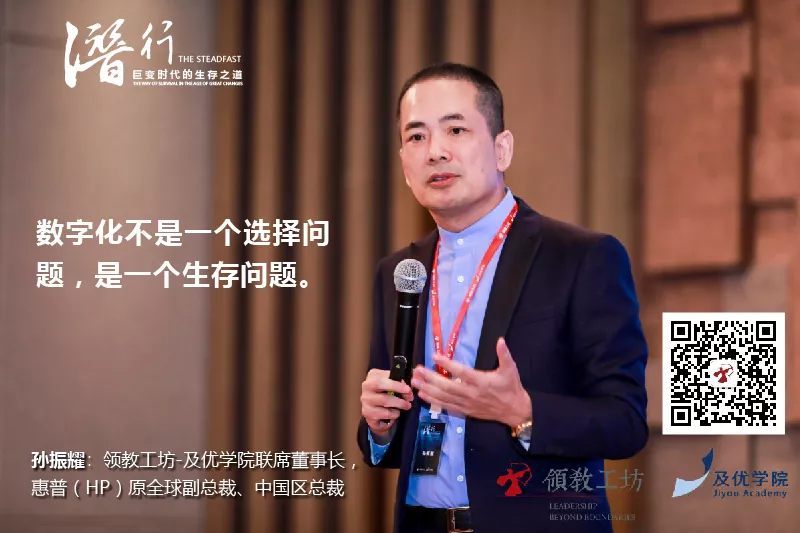 “企业数字化不是一道选择题,而是一道生存题。”惠普原全球副总裁、领教工坊—及优学院联席董事长孙振耀早在上世纪90年代就开始四处游说民营企业家要进行信息化转型,“当时很多人听不懂、不愿意变革,现在再看,还有没有哪个企业没有信息化、没有互联网化?”